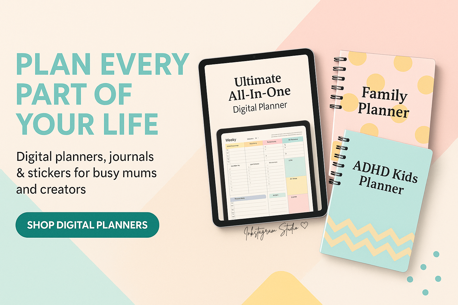 Mum of 3, digital planner designer, and the heart behind Inkstagramstudio. I started this business to bring calm to the chaos, and now I help thousands of women do the same with beautifully functional planning tools. You're not just buying a planner—you're joining a movement.
