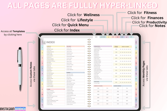 Enjoy unlimited downloads of your tier’s planners, templates, stickers & tools — plus exclusive monthly drops not available on Inkstagramstudio.store.