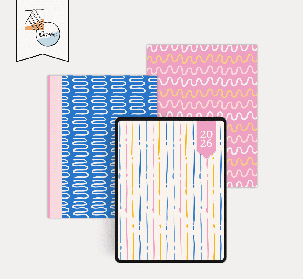 Refresh your planner style with this playful 2026 cover trio. Includes three high‑resolution pastel squiggle designs to match your mood or season. Import easily into GoodNotes, Notability and more.